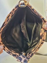 Questa borsa firmata Victoria's Secret è l'accessorio ideale per chi desidera aggiungere un tocco grintoso e sofisticato al proprio outfit. Caratterizzata da un'intramontabile stampa animalier (leopardata) su tessuto dalla finitura leggermente satinata, combina estetica glamour e funzionalità quotidiana. dettagli del design Logo Iconico: Il frontale è impreziosito da una patta in ecopelle nera su cui spicca il maxi monogramma "VS" in metallo dorato, simbolo inconfondibile del brand. Tracolla Elegante: La borsa dispone di una tracolla regolabile in similpelle nera, collegata al corpo della borsa tramite raffinate catene a maglia ritorta color oro, che aggiungono un punto luce prezioso. Struttura Morbida: Il design leggermente arricciato alla base della patta conferisce alla borsa un volume morbido ma capiente. organizzazione interna Scomparti: L'interno, completamente foderato in tessuto nero, è estremamente organizzato. Dispone di un divisorio centrale con chiusura a zip che funge da tasca sicura per gli oggetti di valore. Chiusura Principale: La borsa si chiude con una zip superiore coordinata per garantire la massima sicurezza del contenuto. stile e abbinamenti Grazie alla sua versatilità, può essere indossata come crossbody per un look casual-chic con jeans e maglione (come mostrato nelle foto), oppure portata a spalla per una serata più elegante. La stampa leopardata si abbina perfettamente a colori neutri come il nero, il verde bosco o il cammello. Prezzo trattabile