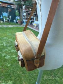 Splendida e rara borsa a tracolla vintage originale, realizzata artigianalmente in vera pelle e pelliccia (cavallino)
