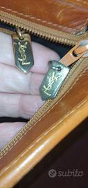 Borsa a tracolla Yves Saint Laurent, chiusura con zip, vintage, colore nero con rifiniture in pelle marrone, usata con cura, in ottime condizioni. Solo il cinturino presenta qualche segno relativo alla sua regolazione.
