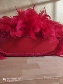 borsa a uncinetto con piuma fondo e manici in ecopelle foderata