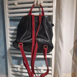 Borsa zainetto con due tasche anteriori e multi scomparto all 'interno Materiale pelle e camoscio colore nero e maculato