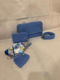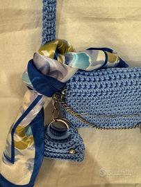 Borsa ad uncinetto fatta a mano, dettagliatamente rifinita, di colore azzurro. Tracolla rifinita accuratamente e facilmente separabile dalla borsa.