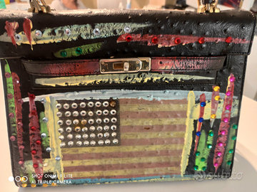 Borsa Alessia Bruni a bauletto,pelle martellata,multicolore su base nera.