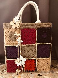 Borsa realizzata all’uncinetto su una base in juta.
