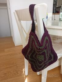 borsa a stella fatta a mano all' uncinetto con lana. interamente rivestita all'interno e anche nel manico con fodera nera impermeabile.