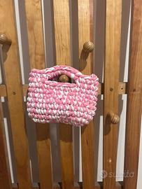 Borsa realizzata a mano con uncinetto, bianca rosa