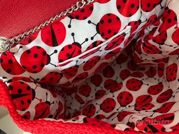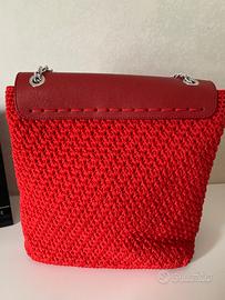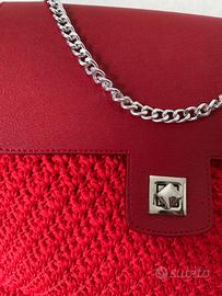 Con catenella in acciaio, colore rosso, base in ecopelle.