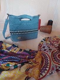 Bellissima borsa fatta all'uncinetto, fondo in ecopelle, foderata interamente.