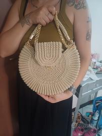 borsa beige all uncinetto capiente con inserti color oro perfetta per qualsiasi occasione