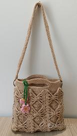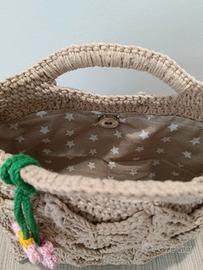 Borsa all'uncinetto Larghezza: 24 cm Altezza: 22 cm Tracolla: 70 cm Cordino di cotone Fodera in cotone Chiusura magnetica
