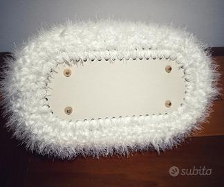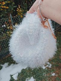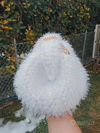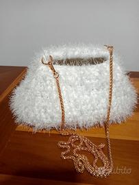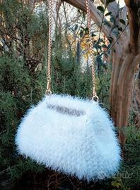 clatch bag interamente realizzata all' uncinetto. Filato morbidissimo in lycra e chic fur, con fondo in pelle. 15hx26L. Pezzo unico