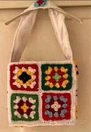 Borsa all'uncinetto Granny Square , in lana realizzata a mano. Struttura rigida interamente con due tasche interne e tracolla foderata.