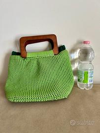 Borsa fatta a mano all'uncinetto in cordino swan colore verde mela