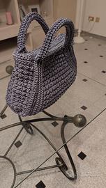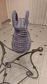 borsa eslusiva originale fatta a mano all'uncinetto colore grigio 35lunghezza x15 larghezza x20 altezza.