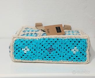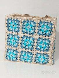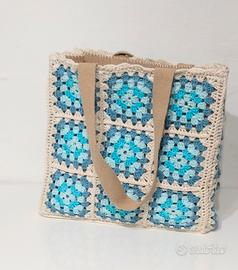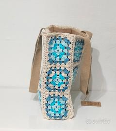 Borsa di juta rivestita ad uncinetto con mattonelle granny! 🥰 Completamente fatta a mano. Rivestimento in cotone cucito 🪡 sulla borsa. 👜 Misura 30 x 30