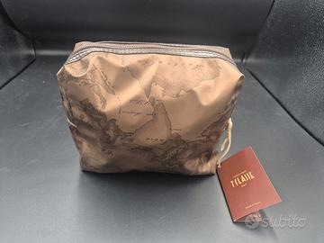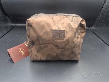BORSA POCHETTE ALVIERO MARTINI DA VIAGGIO IN TELA MARRONE 20X18CM NUOVA CON CARTELLINO