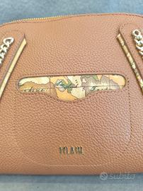 Borsa originale a tracolla Alviero Martini 1° Classe con particolare che riprende la classica stampa Geo. Usata pochissimo pari al nuovo, misura 25x19 x8. Perfetta per tutti i giorni. Chiusura sicura con cerniera completa di tasca interna. Tracolla regolabile. Completa di dust bag originale. Prezzo già super scontato.