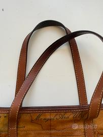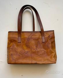 Vendo da privato: borsa Alviero Martini Prima Classe, vera pelle con stampa mappamondo, cinturino da polso, doppia tasca esterna e interno capiente.