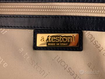 Borsa originale Amedeo Testoni in pelle con dettagli oro. Quattro colori diversi (rosso, blu chiaro/blu scuro, carne), molto spaziosa, con tasca interna.