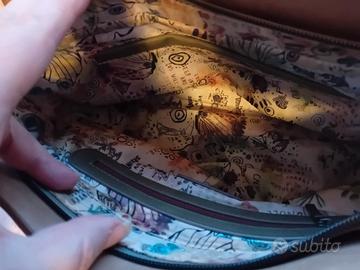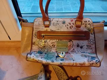 Graziosa borsa anekke modello Amazzonia utilizzabile sia a mano che a tracolla. La borsa è stata utilizzata tre o quattro volte... La tasca centrale presenta due piccole taschine all'interno per riporre le cose in modo ordinato sul retro è presente un ulteriore tasca con chiusura a cerniera. Presenta qualche piccolo segno di usura soprattutto dove i manici si agganciano agli anelli della borsa ho messo una foto per mostrare i piccoli difetti. Completa di tracolla ma non di Dust bag... Ho messo anche una foto del fondo per mostrare le condizioni.