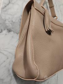 Borsa Anna Virgili in pelle martellata rosa cipria. Completa di tracolla mai usata. Perfettamente tenuta. Misure 35x28x10 200 euro
