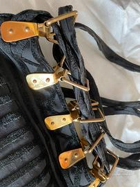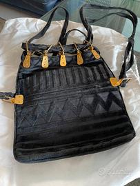 Borsa in velluto lavorato. Dettagli in ottone. Portabile a mano o come zainetto. Misure 22x21. Colore nero