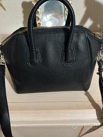 Borsa in vera pelle martellata, con manici sottili e tracolla, presenta piccoli segni sulla pelle dovuto all ‘ uso, , nel complesso in buone condizioni, misura mini