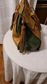 Nessun difetto, ampia borsa che può essere usata anche per PC, libri.... con raffinati ricami di pelle , color verde ai lati.