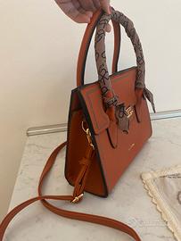 Bellissima borsa , colore arancione, nuova , a mano o tracolla , cicitira di bordo in filo , minuterie dorate, morbida