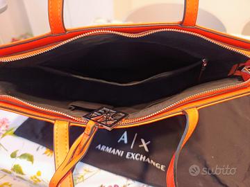 in vendita borsa Armani Exchange usata, colore arancione, presenta un piccolo difetto come evidenziato nell'ultima foto.