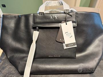 Vendo borsa ORIGINALE Armani Exchange NUOVA completa di caetellini, QR code, pellicole di protezione e dast bug. Borsa di colore Nero bellisosma con porta cellulare staccabile compreso nel prezzo. Si vende in negozio a 179€ come da cartellino scontata a 119€ Cosi composta: - tasca davanti a cerniera - ampio vano centrale - porta cellulare o dcumenti staccabile - doppi manici per portarla dia a mano che a spalla Nuova e autentica Armani