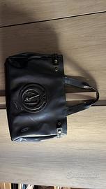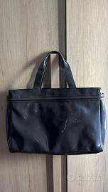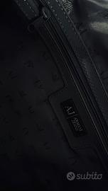 Borsa Armani in materiale lucido, usata abbastanza, ma ancora in ottime condizioni generali. La superficie è ben tenuta, senza graffi importanti, e l’interno è originale, come si può vedere dalla foto con il logo. L’unico difetto da segnalare è un leggero consumo sulle maniglie (la parte dove si tiene la borsa), dovuto all’uso. Per il resto la borsa è perfetta: struttura integra, zip funzionanti e materiale ancora molto bello e brillante.