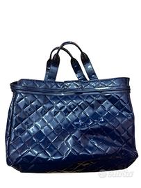 Borsa originale Armani Jeans in ecopelle verniciata blu navy, con elegante lavorazione trapuntata a rombi.
