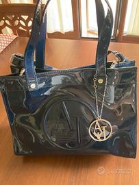 Borsa in vernice blu perfetta Giorgio Armani originale naturalmente, da portare sia a mano com manici e anche con tracolla. Nuovissima