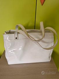 🔴Prezzo trattabile🔴 Vendo per inutilizzo bellissima borsa tote bag di Armani Jeans in vernice bianco panna Ottimo stato Con custodia dustbug blu Misure: Larghezza cm.35 Altezza cm.28 Profondità cm.8 🍀SPEDIZIONE NON disponibile solo ritiro a mano a Torino (Piazza Sofia) con pagamento in contanti alla consegna.