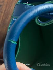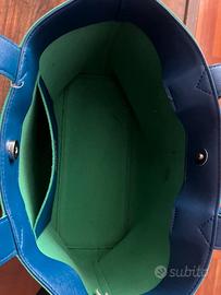 Bellissima borsa Armani Jeans, perfetta per aggiungere un tocco di stile a qualsiasi outfit sportvo ed estivo. I manici presentano dei piccoli taglietti. Sul retro è presente una macchia nera come si vede in foto