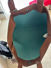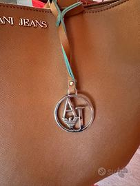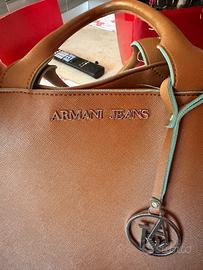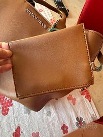Vendo causa inutilizzo borsa Armani, completa di pochette e sistema di chiusura a clip. La borsa, fuori in color cuoio e dentro rivestita in tessuto color verde acqua, è in perfette condizioni. Ritiro in zona, no spedizione.