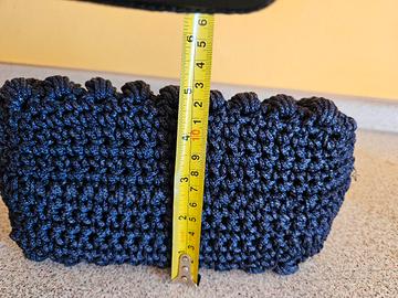 Borsa a mano di colore blu navy è un pezzovintagerealizzato artigianalmente all'uncinetto. Presenta una particolare lavorazione a rilievo, spesso chiamata "punto nocciolina" o simile, che crea una texture tridimensionale su tutto il corpo della borsa. Stile:Modello rétro, tipico degli anni '50, '60 Dettagli:Doppi manici rigidi coordinati e chiusura a scatto metallica, rifinita in tonalità dorate o ottone. Materiali:Spesso realizzata con filati sintetici resistenti come il polipropilene o cordino, che imitano l'aspetto della rafia ma con maggiore durata. Ha solo un po il filo tirato sui manici,diversamente e in perfette condizioni. Le foto sono parte integrante della descrizione