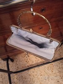 Borsa artigianale in stoffa di tappezzeria in velluto, retro colore unito, foderata in celeste Dimensioni 20*21h*8cm.