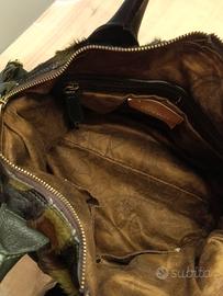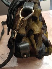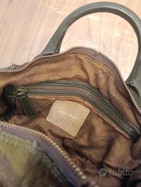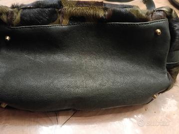 Vendo Borsa artigianale fatta a mano in cavallino con colori militari e rifiniture di pelle.