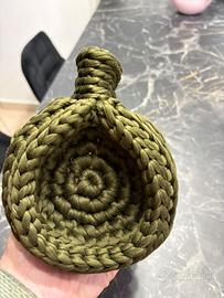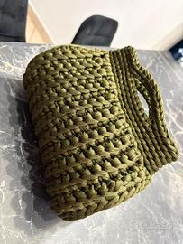 Vendesi splendida borsa fatta a mano all'uncinetto, realizzata con cordino di alta qualità color verde oliva/militare. Il design è compatto ma capiente, perfetto per un look casual-chic o per dare un tocco originale a un outfit elegante.