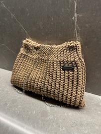 Splendida borsa artigianale completamente fatta a mano, realizzata in cordino lavorato all’uncinetto.
