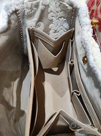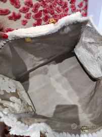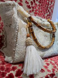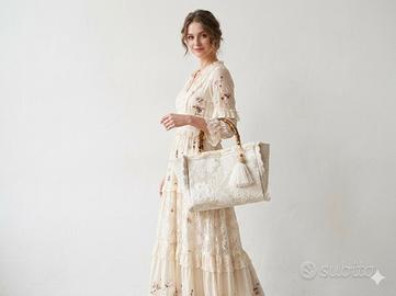 🌟 Borsa Artigianale in Damascato & Uncinetto – Pezzo Unico 🌟 Elegante borsa realizzata interamente a mano, perfetta per chi cerca un accessorio esclusivo e curato nei minimi dettagli. Ideale per uno stile Boho Chic o Vintage Romantico. ✨ Caratteristiche principali: Materiale: Pregiato tessuto damascato color beige e panna (nota: il beige è leggermente più scuro dal vivo). Dettagli Artigianali: Laterali lavorati all'uncinetto con motivo Granny Square e rifiniture in passamaneria sfrangiata sui bordi. Manici: In vero bambù (base 21 cm), resistenti e sofisticati. Interno: Foderato in morbida pelle scamosciata con inserti in stoffa laterali. Chiusura: Pratica calamita dorata. 📏 Dimensioni: Lunghezza: 41 cm Altezza: 30 cm Profondità: 20 cm (Borsa molto capiente, ottima anche come borsa da giorno o da ufficio) 🎁 In Omaggio: Incluso nel prezzo un comodissimo organizer interno in feltro con numerose tasche e cerniere per tenere tutto in ordine. 💎 Condizioni: Nuova, mai usata. Pezzo unico d'artigianato. #borsaartigianale #damascato #uncinetto #grannysquare #handmade #bambu #pezziunici #bohochic #borsadonna #vintagechic #handbag #fattoamano