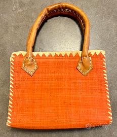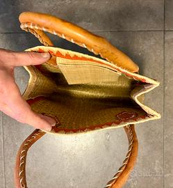 Borsetta estiva in paglia realizzata a mano. Manici di cuoio. Colori come da foto.