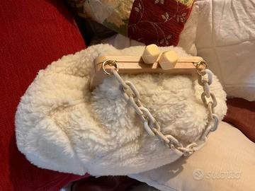 borsa artigianale foderata in similpelle rossa con tasche interne. In vello di lana. Originale , estrosa e pratica. Non lascia pelucchi