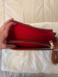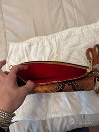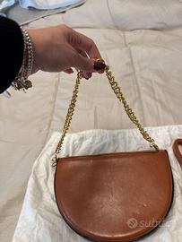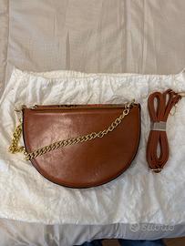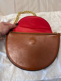 Borsa mezzaluna ecopelle con varie tasche. Possibilità di mettere la catena o la tracolla ancora imballata. Mai usata. Segnalo la cerniera posteriore difettosa.