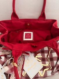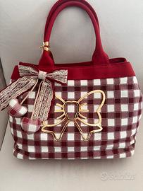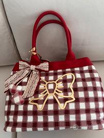 Borsa originale atelier Fixdesign in tela a quadri bianco rossa cm 40per 30 , unico scomparto centrale, doppi manici. Nuova con etichetta e custodia.