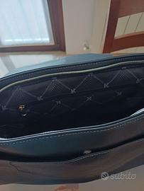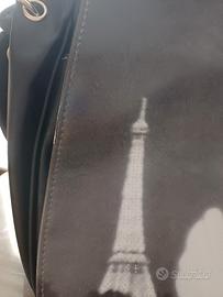 Usata una volta, bellissima borsa in ecopelle con tracolla. Una tasca interna ed una esterna con cerniere, molto capiente, altezza cm 27, larghezza cm 37 e profondità cm 15. Leggerissimo difetto come da foto.