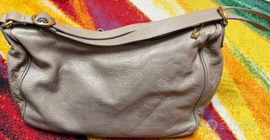 Borsa a spalla con tracolla regolabile, in pelle, Alviero Martini 1° Classe, motivo Geo, colore taupe/tortora, ottime condizioni.