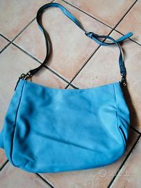 borsa azzurra con tracolla regolabile e tasca interna.
